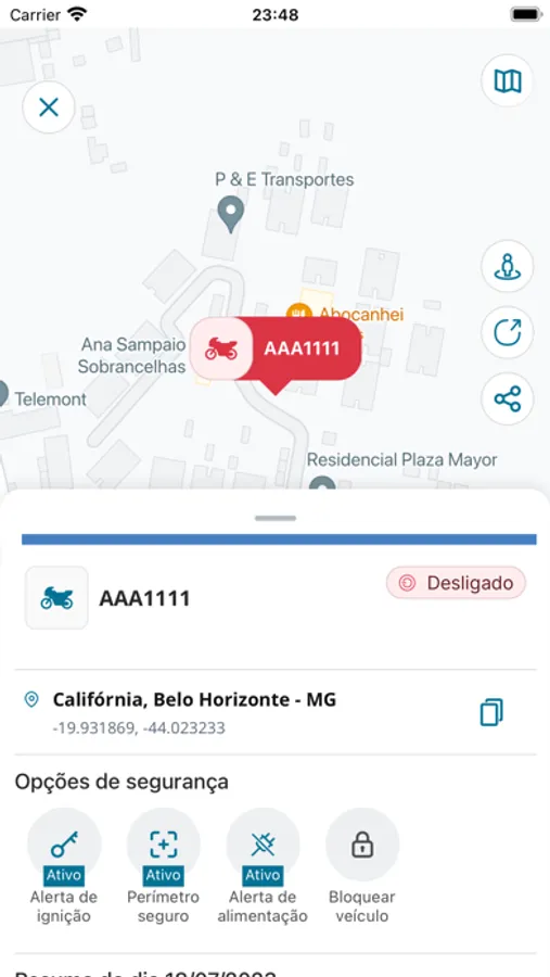 . Para atualizar a localização do veículo, basta clicar no botão de atualização na tela de acompanhamento do veículo.