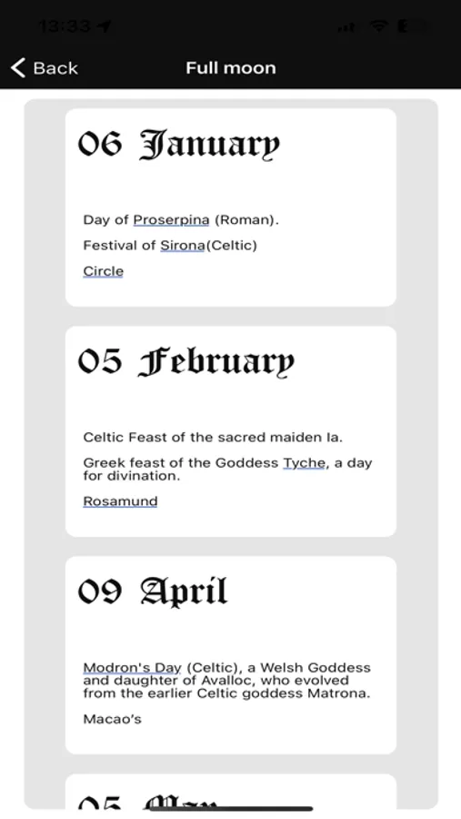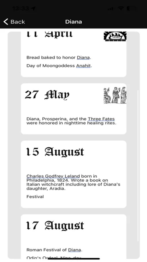 This unique calendar app includes feast days from ancient pagan pantheons from all over the world including Roman, Greek, Norse, Egyptian, Babylonian, African, and other mythology.