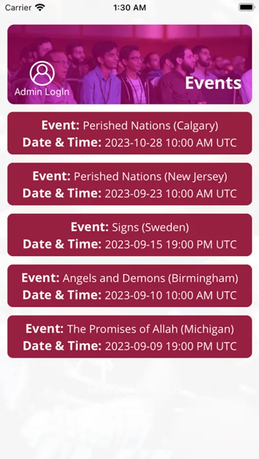 Upcoming events of AlMaghrib happening across the globe. Additionally, staff members can use this app to scan tickets for those events.