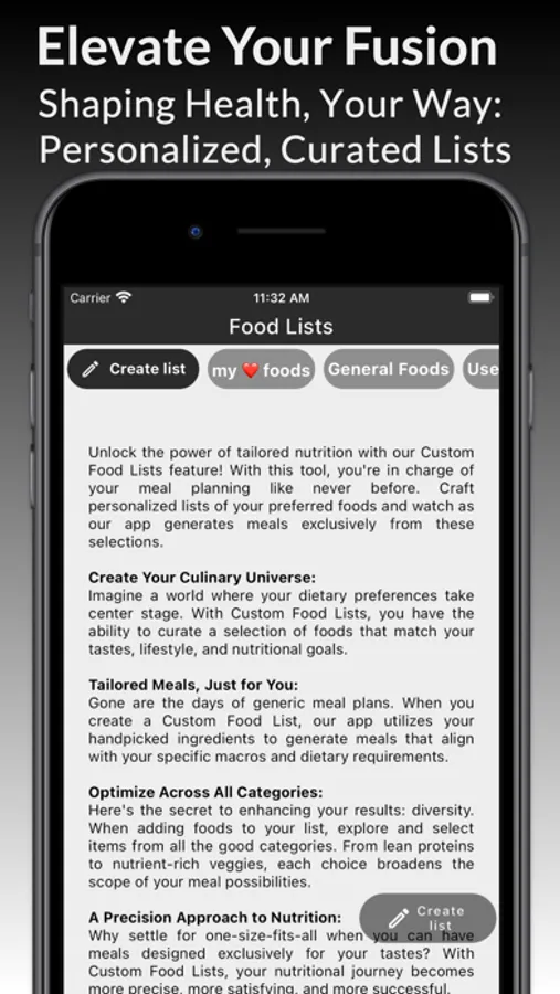 Your Culinary Canvas: Unleash your inner chef by curating lists of preferred meals. Mold your dining experience to mirror your individual tastes, all while staying aligned with your aspirations.