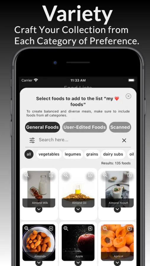 Seamless Variety: Dive into a world of whole, unprocessed foods. Effortlessly scan barcodes to incorporate your favorite products, harmonizing taste and nutrition in every bite.