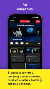 • Companies to broadcast keynotes, company announcements, product launches, trainings, and Q&A sessions