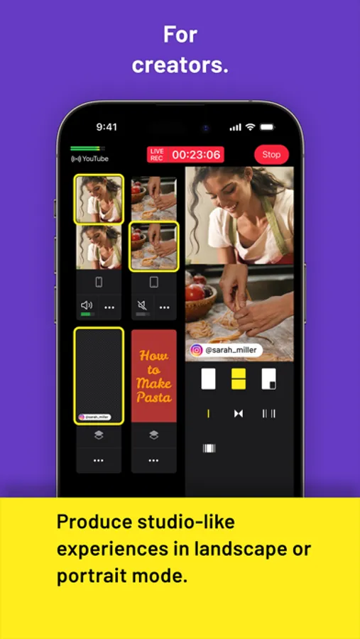 • Stream or record in portrait or landscape mode