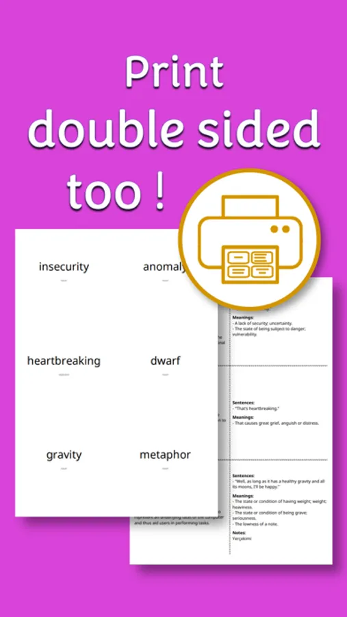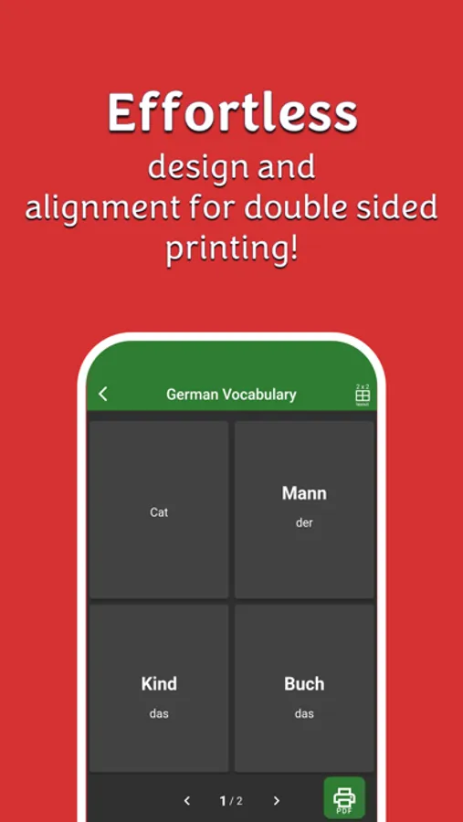 Print Flashcards is a powerful study tool that helps you streamline your learning across various subjects. The app allows you to create custom double sided flashcards, organize them into decks, and generate a printable PDF for easy offline learning. You can also import flashcards from a spreadsheet. Enhance your study efficiency with Print Flashcards today!