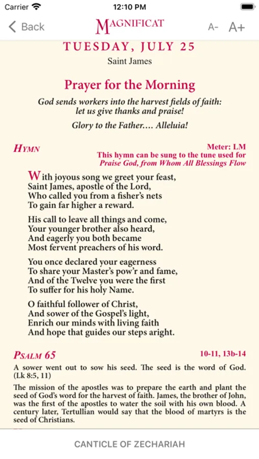- Morning and evening prayers, inspired by the Liturgy of the Hours