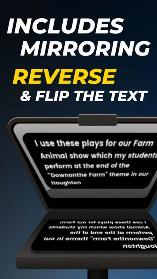 • Enable 'Mirroring' to reflect/reverse the text for use in professional teleprompter rigs