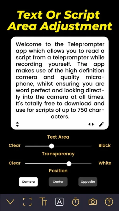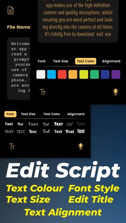 • Use your device camera to record your scripts as you read from the Teleprompter