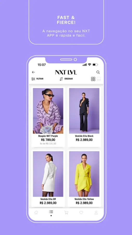 Navegue pelo app NXT LVL e escolha seus looks favoritos já!
