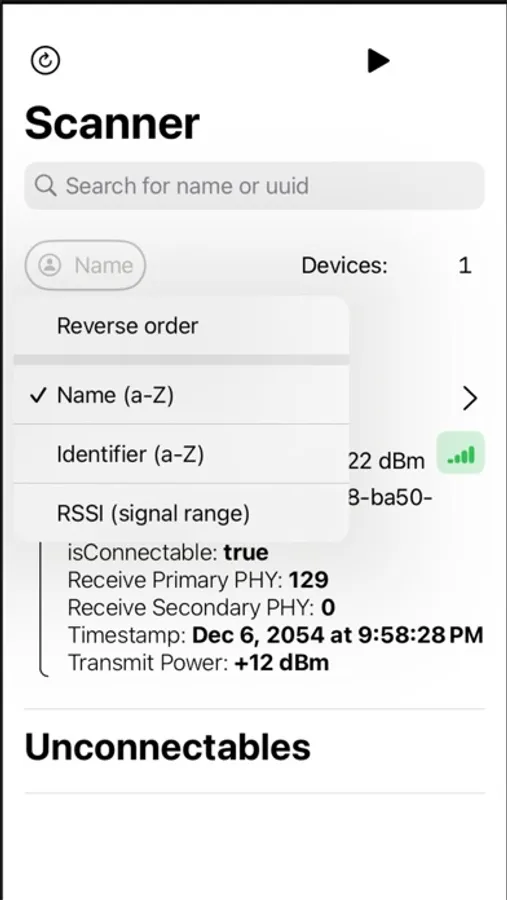 - Configure custom settings like auto-notification, auto-remove unreachable peripherals, stop scan on idle, and more.