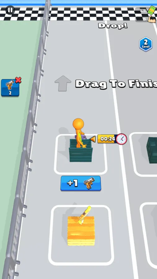 Brace yourself with weightlifting, get weapons and buffs from chests, shoot as many weapons and buffs as you can before the time runs out, shoot the targets at the end and earn money!