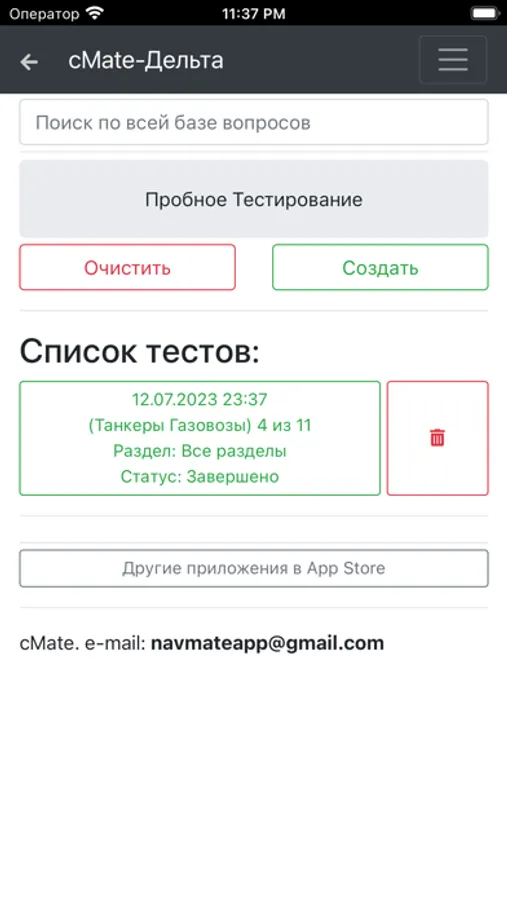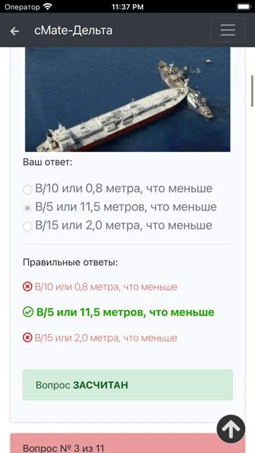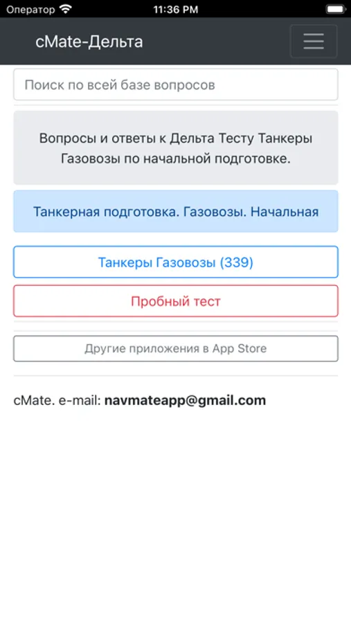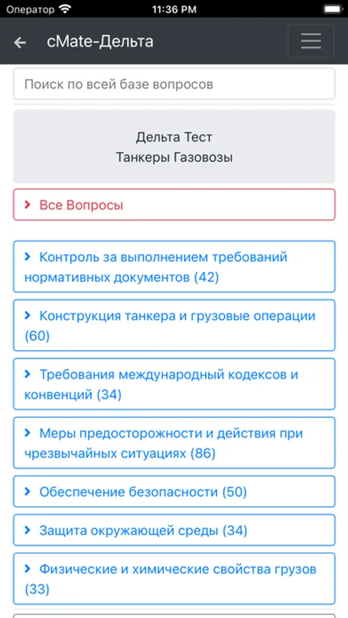 База приложения содержит 339 вопросов для проверки знаний командного и рядового состава в соответствии с международными и национальными требованиями.