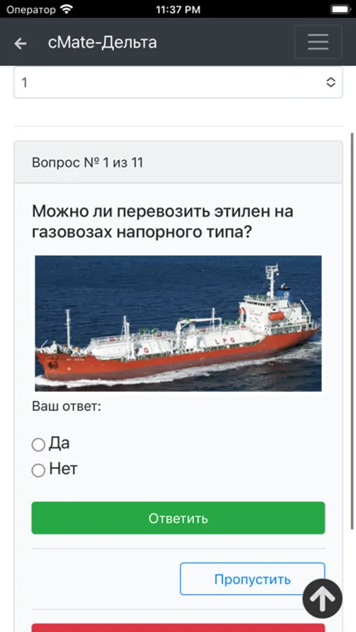 Дельта тест. Танкерная подготовка - Газовозы. Начальная подготовка