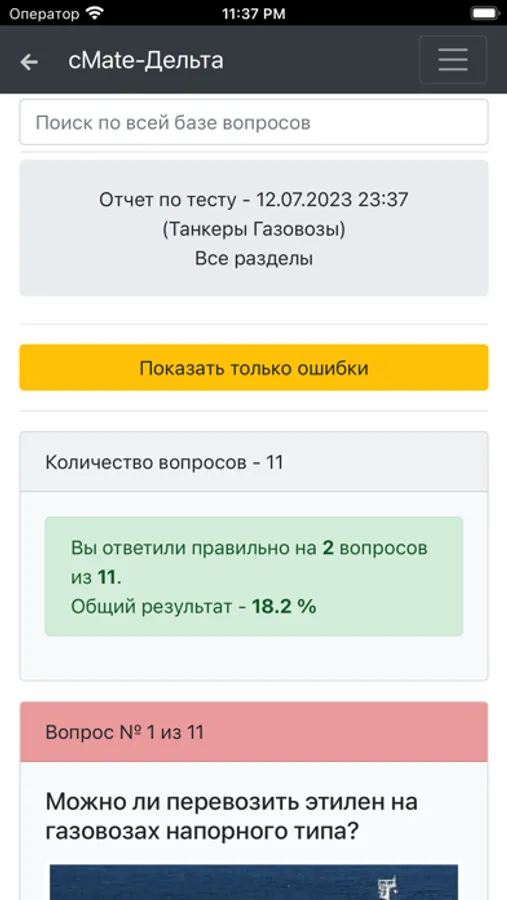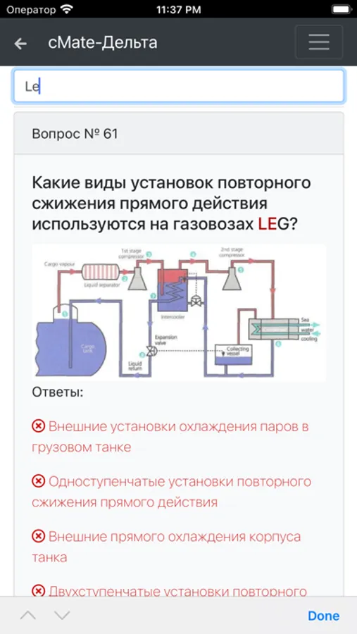 Приложение предназначено для проверки знаний членов экипажей морских судов. Специалистов по проведению грузовых операций на газовозах с начальной подготовкой