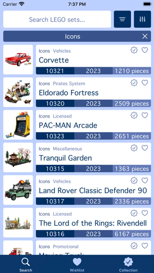 Keep a detailed inventory of your LEGO collection right at your fingertips. With one tap. easily add the sets you own!