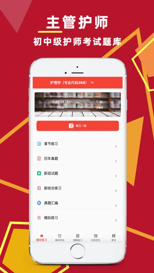 把握命题思路,点拨解题技巧,主管护师考试题库由专业人员解析,同时您可以按章节,科目同步练习,考点难点全网打尽,您身边的考试过关神器。
