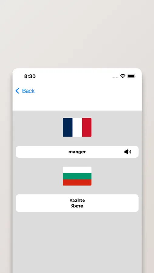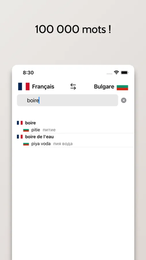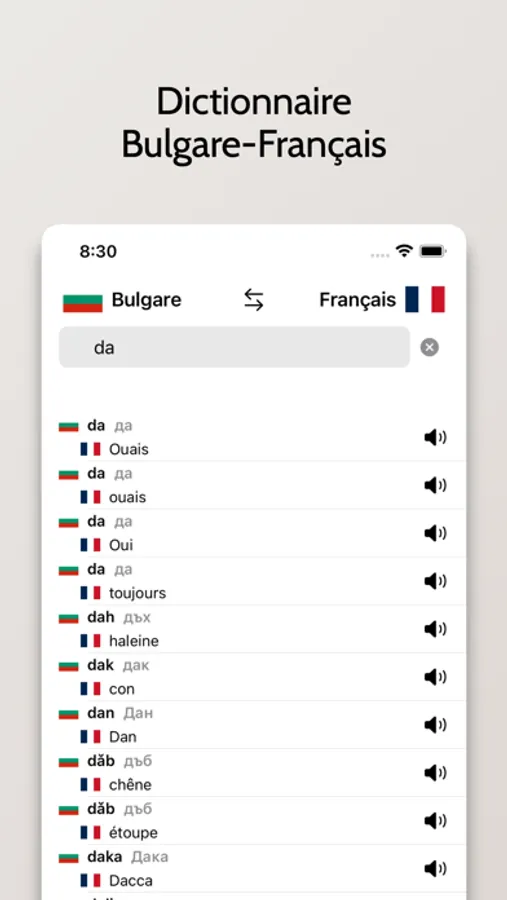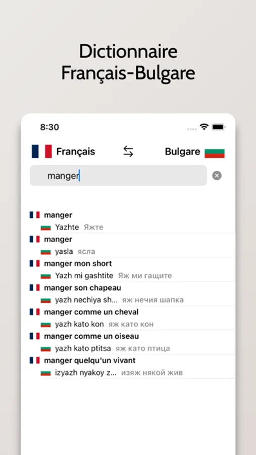 - Possibilité de rechercher à partir de mots en Français ou en Bulgare