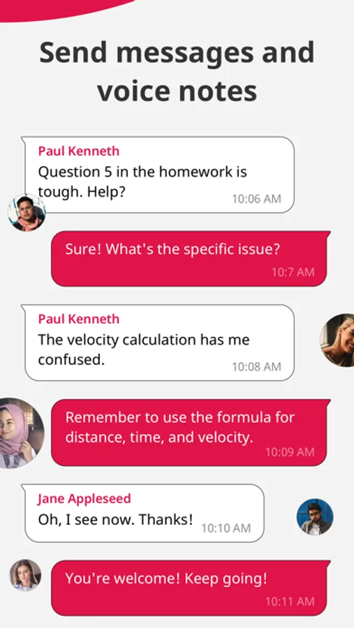 Never lose files • Send multiple file types including images, videos, and documents, all stored securely on the app for future reference.