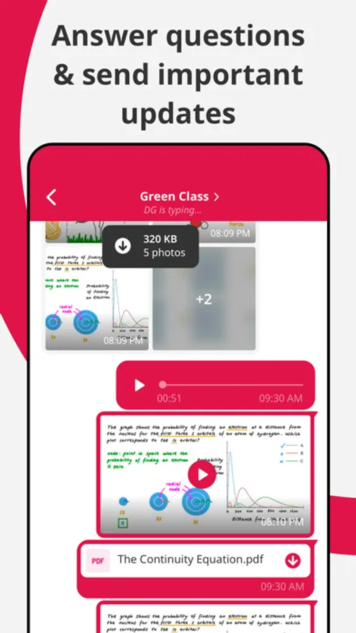 Stay up to date • Immediately share messages, important updates, and reminders with classes or individual students.