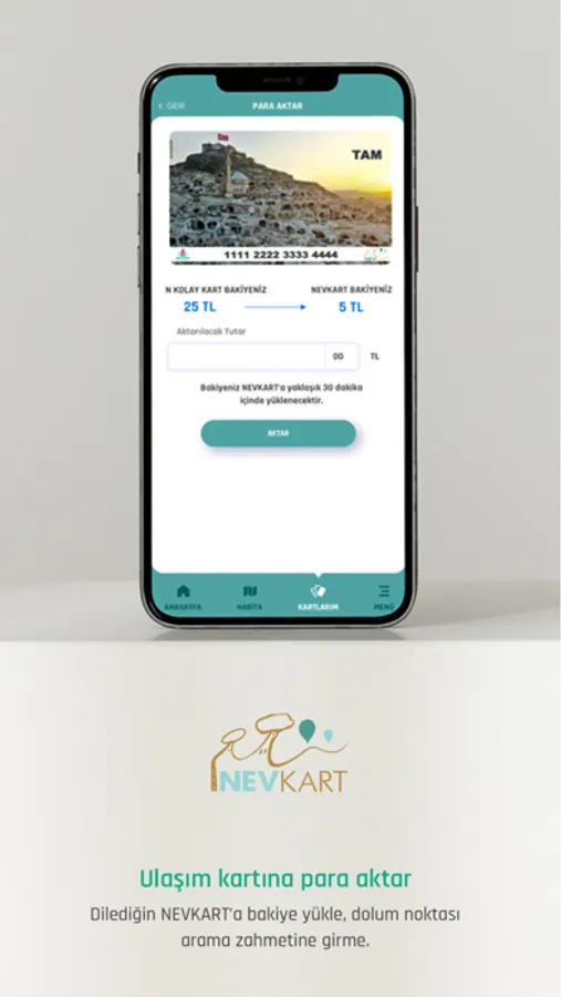 Otobüse binmek için NevKart uygulamasından N Kolay sanal kartınıza para yükleyerek otobüs binişlerinizde kullanabilirsiniz.