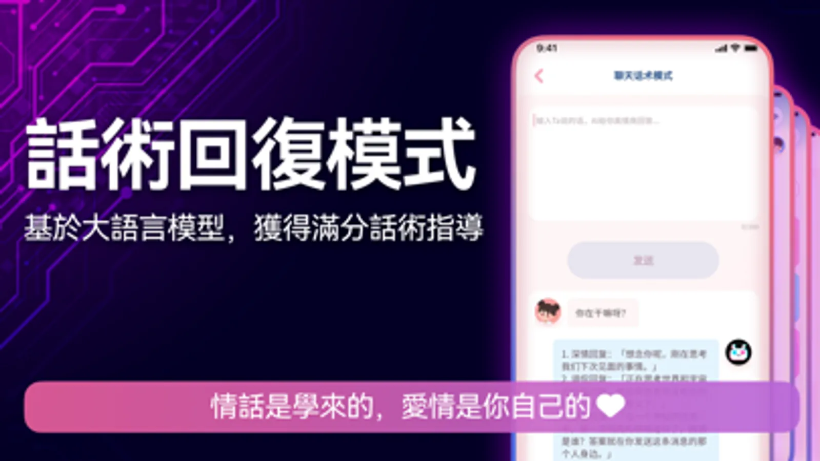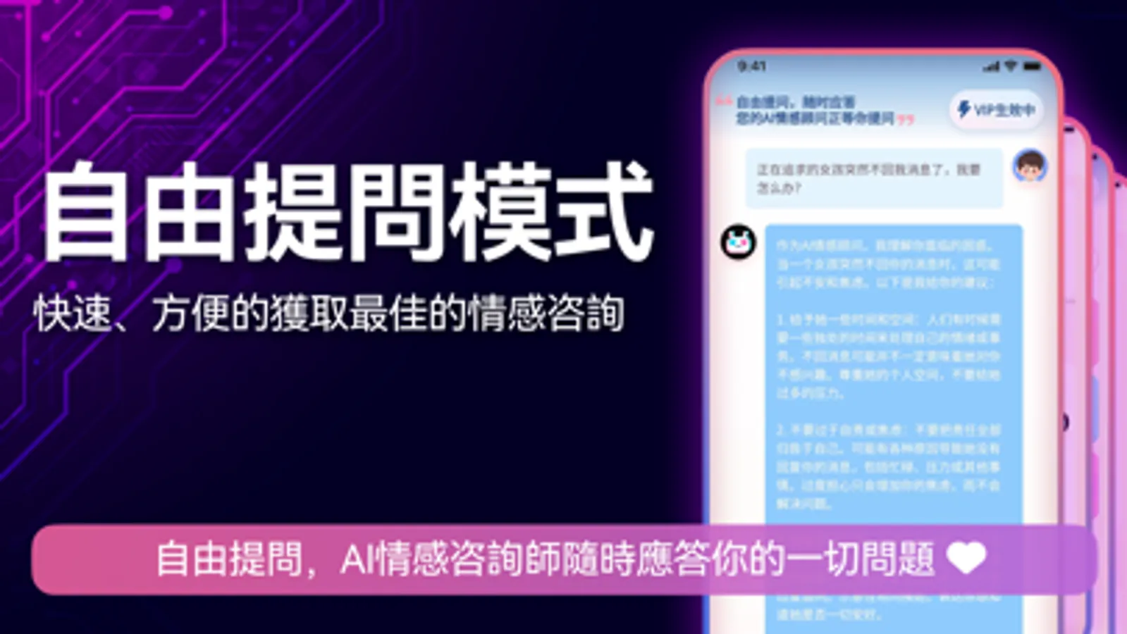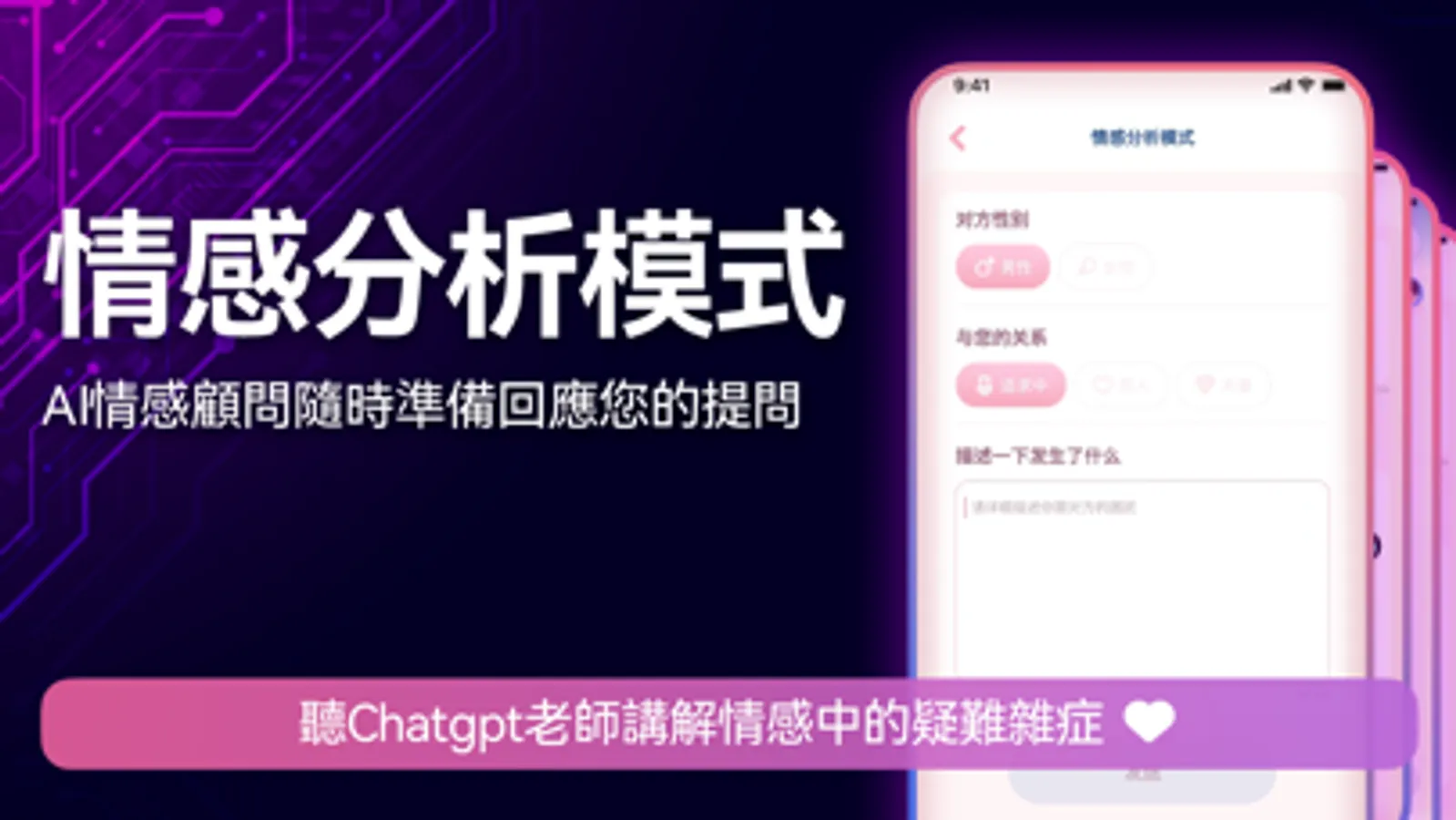 如果您在感情方面有相關的困擾,可以讓機器人顧問給予您合適的疏導跟建議