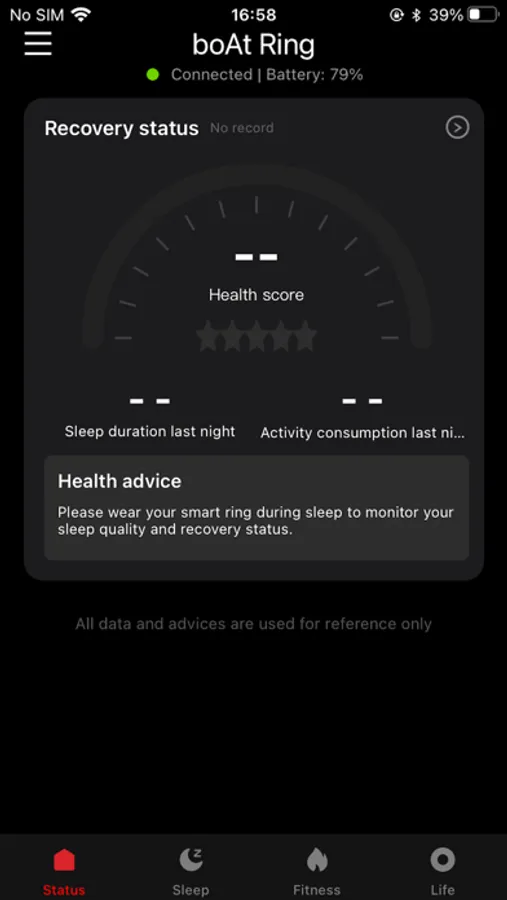 All health data collected by the boAt Ring are not for medical use, but only for general fitness purposes. They cannot be used as a basis for judging one's own health, and are only for reference.