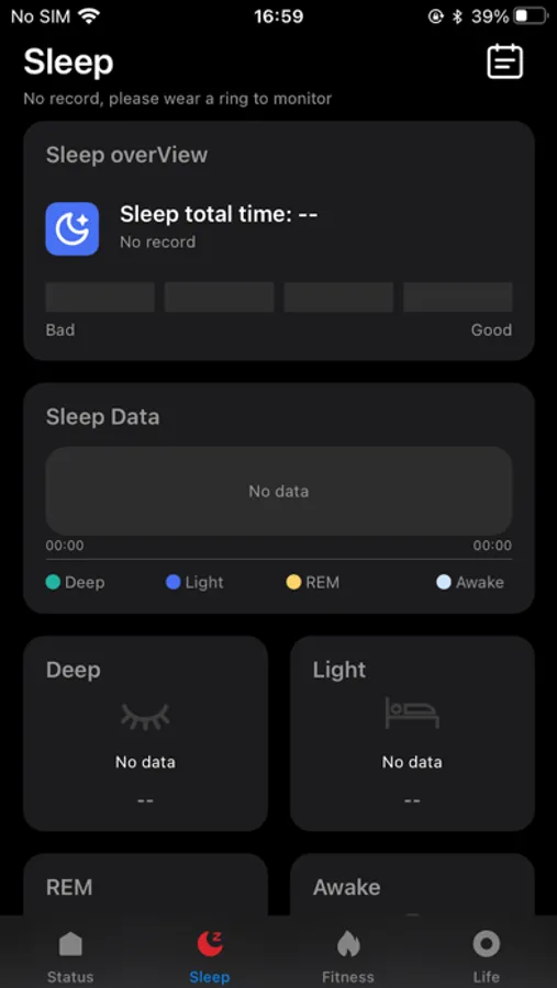 (1)Sleep data display: Records the body sleep data by the smart ring, and provides professional sleep health statistics and analysis.