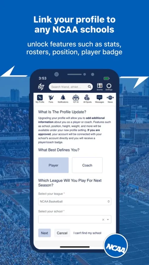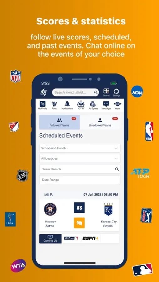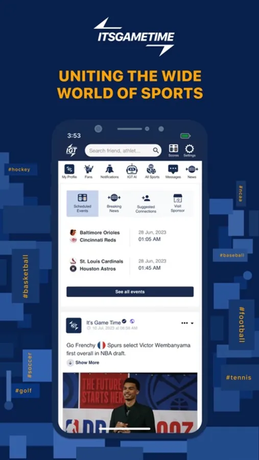 Download the It'sGameTime App for FREE and enter the wide world of sports.