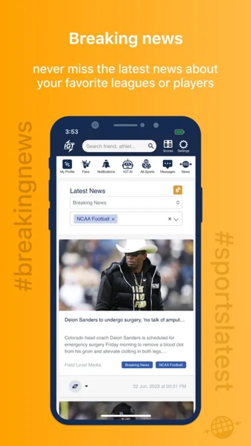 Personalized news: Users receive daily news for their favorite leagues, teams, and players.