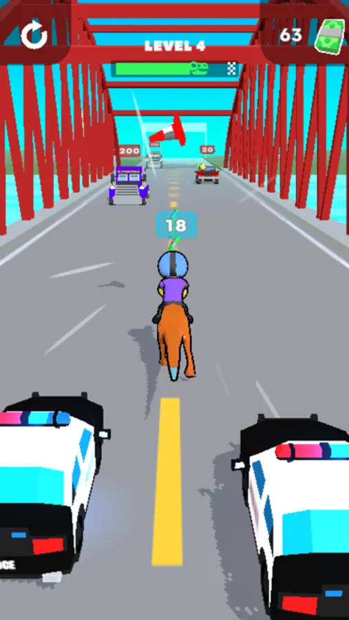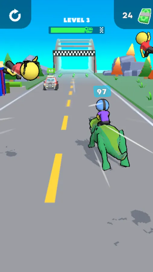 In Dino Rush Run, players are tasked with controlling a dinosaur character through action-packed races, navigating challenging obstacles, and outsmarting the relentless pursuit of the police. With its simple and addictive gameplay mechanics, this game appeals to players of all ages. Leap over hurdles, evade dangers, and collect power-ups to enhance your dinosaur's abilities, all while striving to achieve the highest scores and unlock new levels.