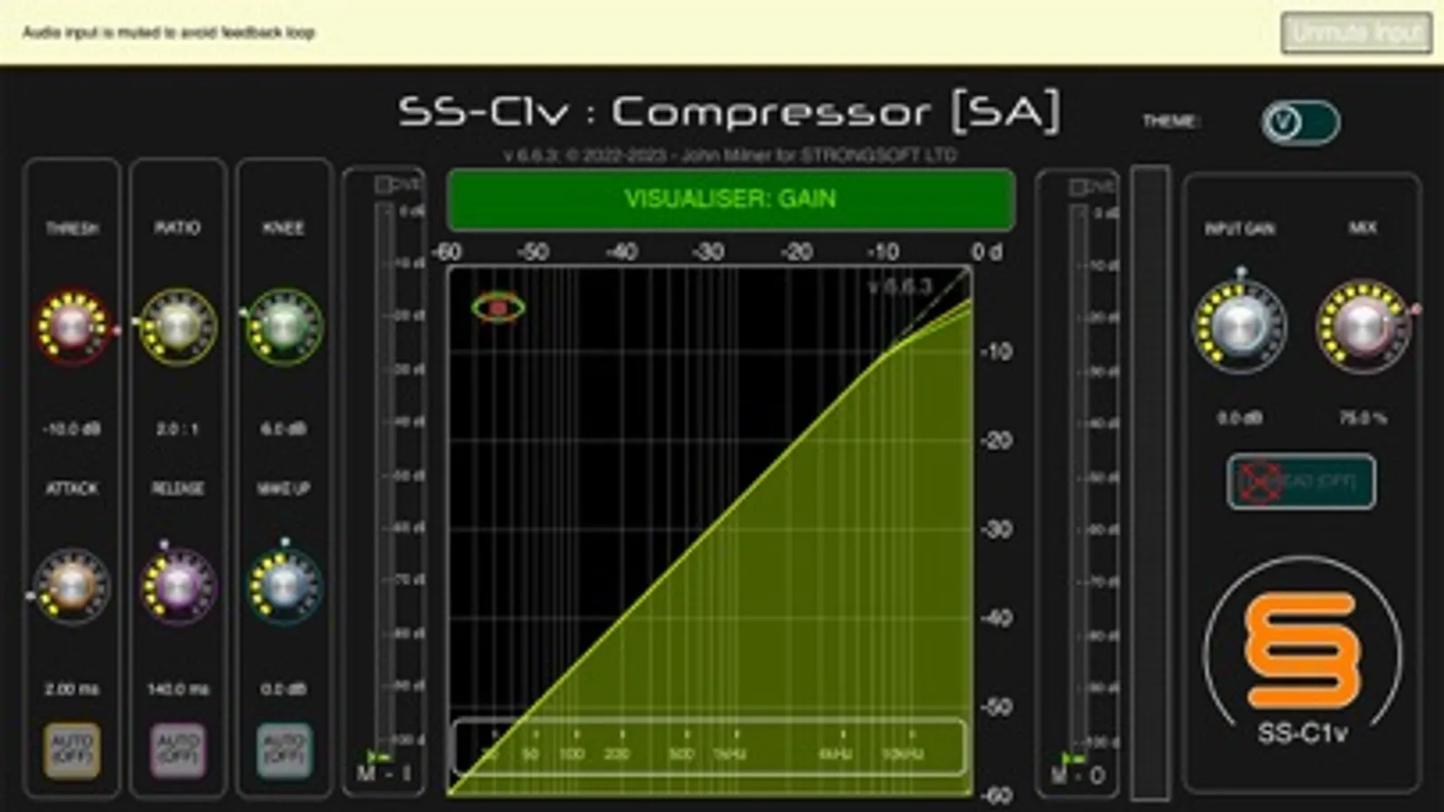 StrongSoft SS-C1v Compressor is a comprehensive professional laboratory-grade compressor featuring large scale gain and envelope visualisation, accurate metering, as well as all the other features you'd expect, including 'look ahead'. It features two 'themes' - 'VIN' (vintage) and 'MIN' (minimal) (see screen shots). The sound is accurate and transparent, and the visualisation helps you know exactly what the compressor is doing at all times...