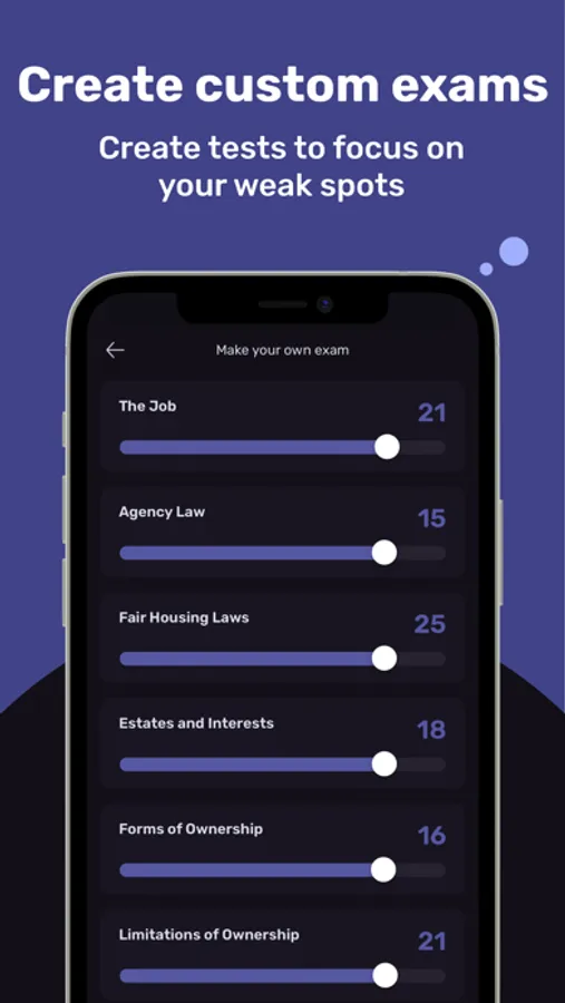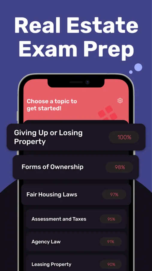 Our goal is to give you all the information you need to pass the Real Estate exam. All in one app. This study app directly aligns with the Real Estate exam blueprint, giving you the preparation you need to achieve the highest score possible.