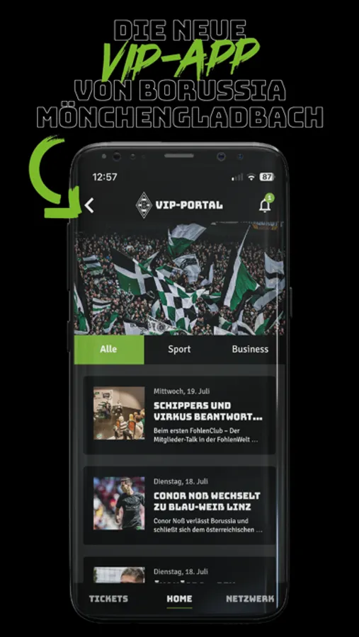 Unsere VIP-Gäste werden von der App während ihres gesamten Besuchs am Spieltag begleitet. Die Anwendung ermöglicht es den Nutzern, die Speisekarte im Voraus einzusehen, das FohlenEcho zu lesen und am VIP-Tippspiel teilzunehmen. Zusätzlich wird für unsere Partner ein exklusiver Business-Netzwerk-Bereich geschaffen, wodurch Sie untereinander netzwerken können. Hier erhalten Sie nicht nur aktuelle Business- und Sportnews, sondern auch die Möglichkeit zum Austausch innerhalb des Partner-Netzwerks.