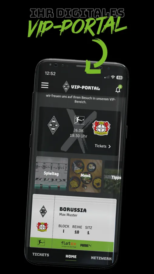 - Spieltagsmodus mit allen relevanten Informationen rund um Ihren VIP-Bereich im BORUSSIA-PARK