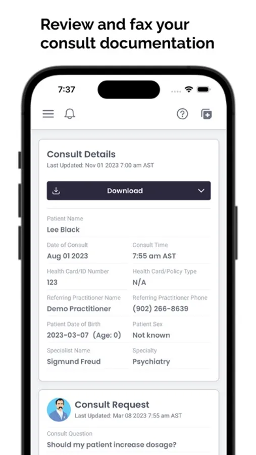 - Secure Peer Consults: Easily set up phone consultations with specialists in your jurisdiction to discuss challenging medical cases without phone tag. Includes documentation and reimbursement features. (Available only in select jurisdictions)