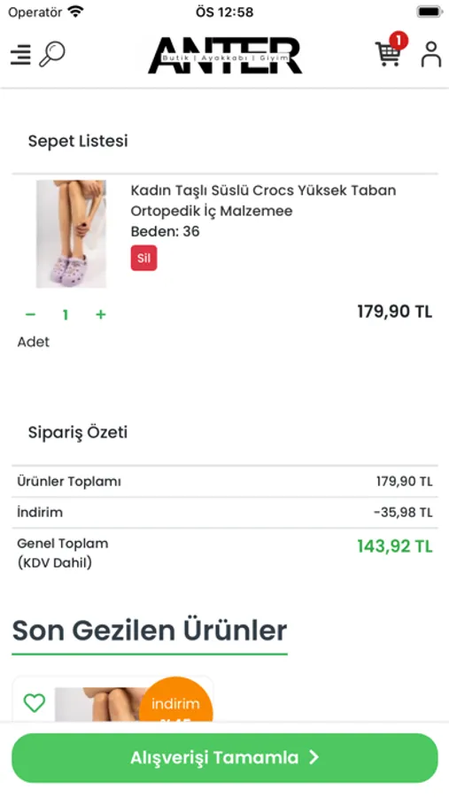 Anter Butik uygulamasıyla ürünleri inceleyebilir ve satın alabilirsiniz.