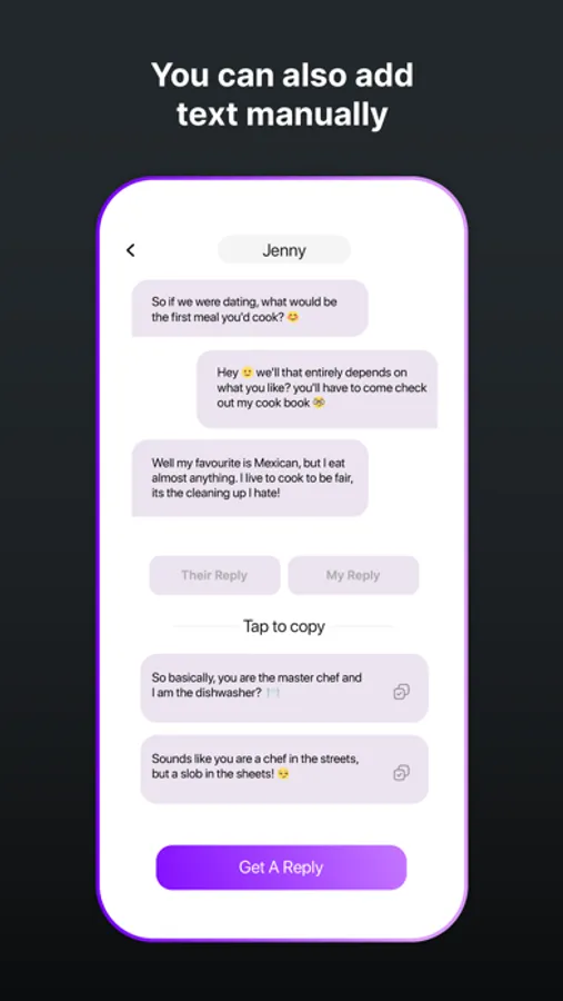 Our AI-powered suggestions are tailored to your preferences, style and the specific conversation. It's like having a smooth-talking virtual wingman by your side at all times.