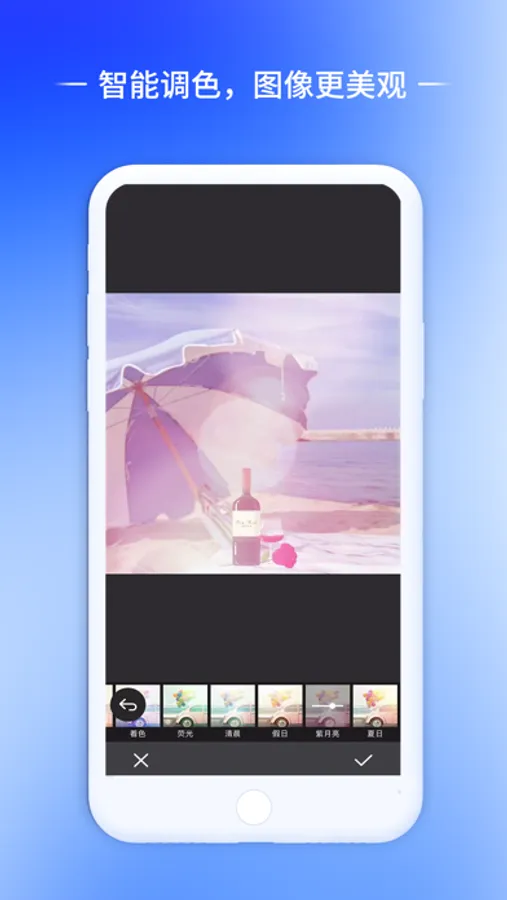 **智能照片美化** 多种丰富滤镜及贴纸,让您的照片摇曳生姿!