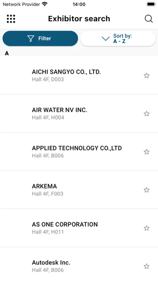 Exhibitor search: search for companies and products, filter and sort functions, and add photos and notes to an exhibitor available