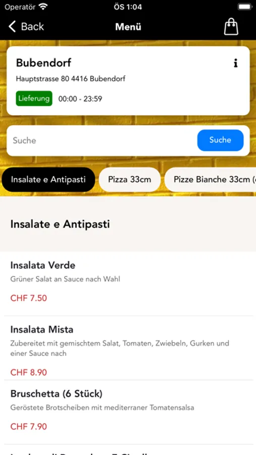 * Sehen Sie sich unser Menü an