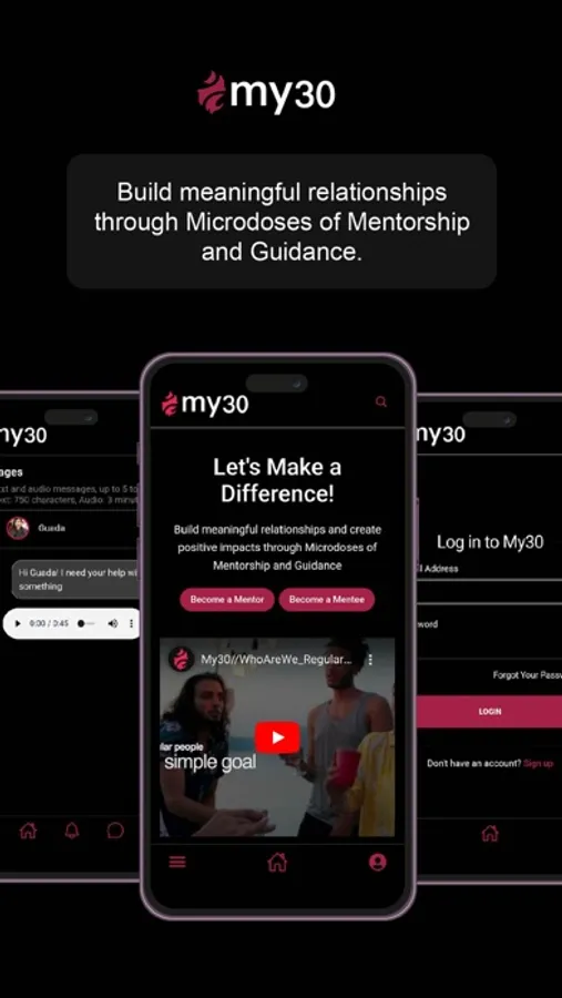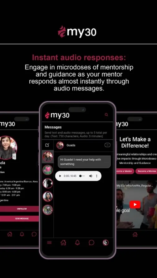 My30 is a mobile application that creates meaningful relationships through Microdoses of Mentorship and Guidance.