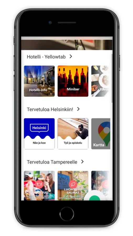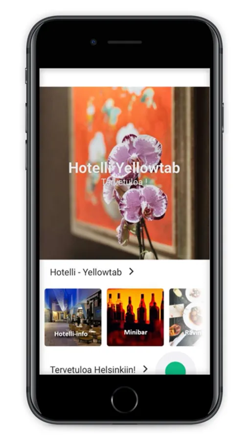 Hotellikohtaisesti muokattu sisältö, jota asiakkaat voivat yöpyjät voivat käyttää. Hotelliasiakkaat löytävät ohjelmiston avulla kätevästi hotellin omat tiedot, voivat tilata huonepalvelusta ruokaa, soittaa sovelluksen kautta vastaanottoon tai chatin kautta olla yhteydessä. Yellowtab for Hotels ohjelmasta löytyvät myös tiedot kaupungista, uutiset, muuta hyötyä sekä huvia kaiken ikäisille.