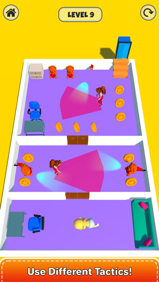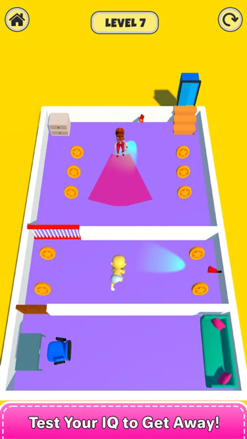 In this game, you will take on the role of a mom with a very mischievous child. However, your naughty will hide everywhere he can. You must be clever, move fast, be alert, and be prepared.