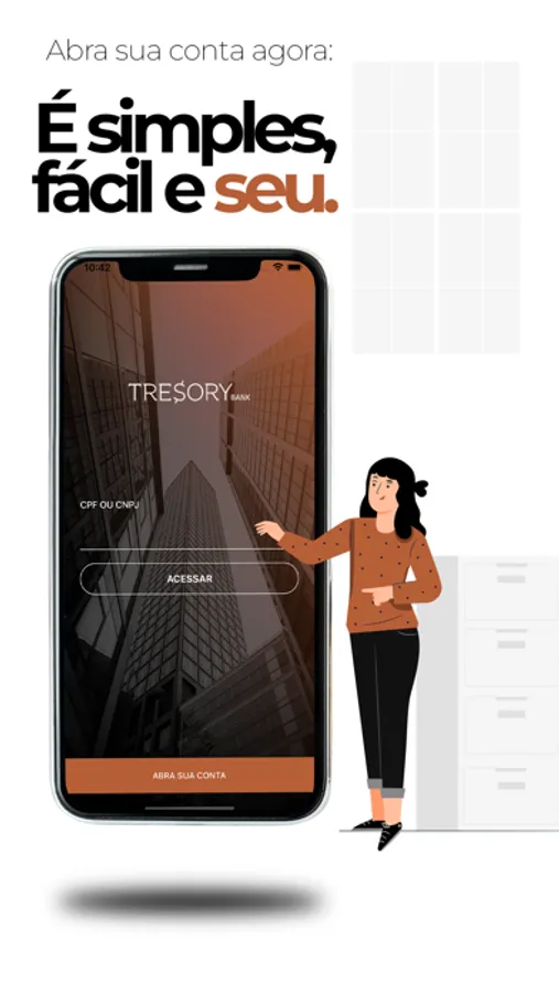 Abra sua conta digital no Tresory Bank. Evoluímos cada vez mais para que você tenha a melhor experiência, O Tresory Bank oferece uma conta corrente completa e totalmente gratuita!