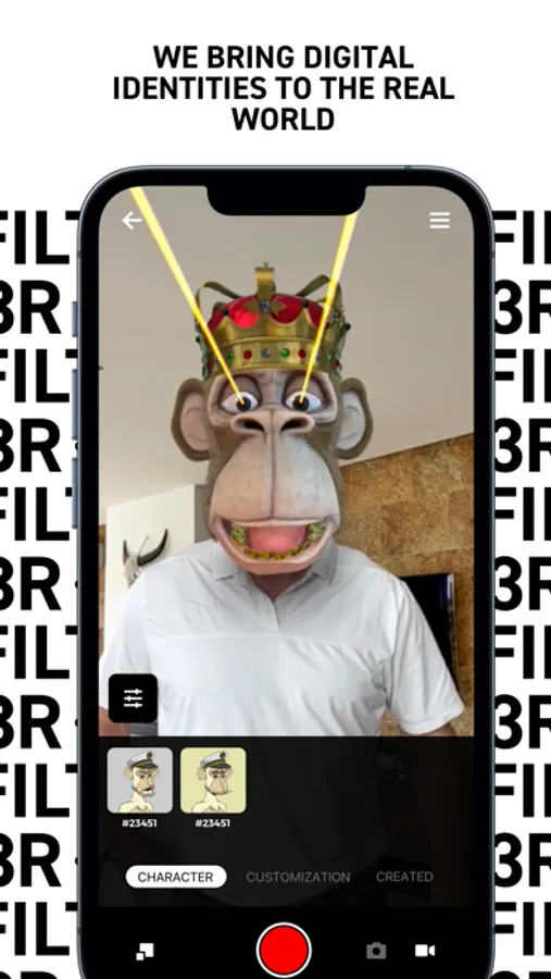 FILT3R STUDIOS introduces digital identities into the real world. This means using Augmented Reality Technology to give real people a digital identity through 3D-developed NFTs combined with facial tracking software. With the iPhone's True Depth camera, our app can track your facial movements and overlay virtual objects onto your face in real time, creating the illusion of actually wearing them! Choose from a variety of AR filters and effects, from fun masks and hats to sophisticated makeup and accessories, enabling you to transform your look and express your creativity.