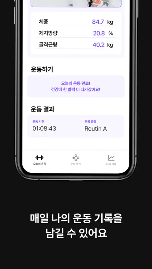 - 몸무게, 골격근량, 체지방량을 기록할 수 있습니다.
