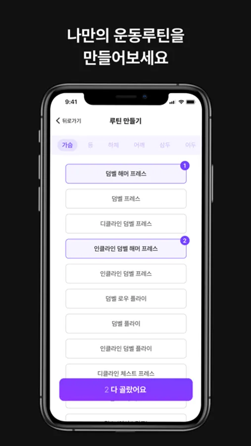 - 자신만의 운동 루틴을 만들고 운동 후 달력에 매일 기록을 남길 수 있습니다.