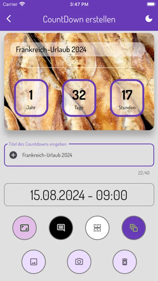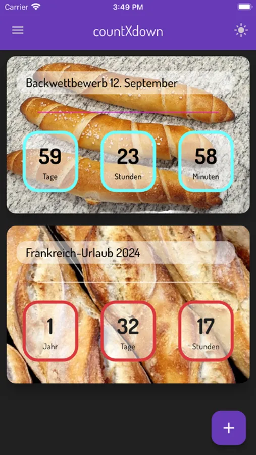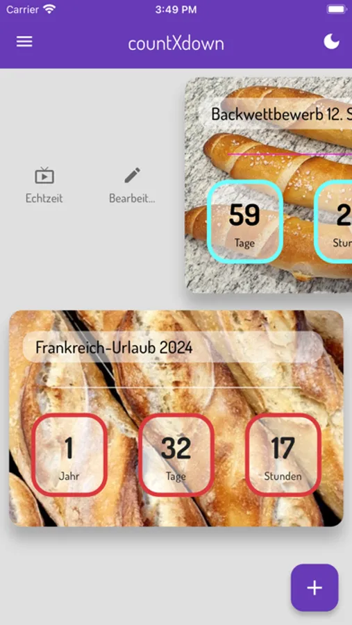 countXdown zeigt - auch in Echtzeit - an, wie viel Zeit bereits seit einem Ereignis (erster Kuss, Hochzeit, ...) vergangen ist oder wie lange ein Ereignis noch in der Zukunft liegt (neuer Job, Geburt des Kindes, ...). Die Gestaltung der einzelnen CountDowns ist mit Fotos von der Kamera und aus der Galerie, aber auch schlicht mit Farben möglich, so dass jeder CountDown ein Unikat wird. Jeder einzelne CountDown kann in Echtzeit betrachtet werden, um das Warten auf ein Ereignis zu verkürzen. Diese App ist in vier Sprachen erhältlich und verfügt über einen Dark- und Light-Mode.