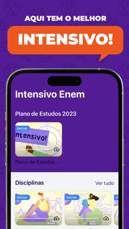 Agora você pode mandar bem nas provas com as dicas do Intensivo Enem. Confira os temas que mais caem de Matemática, Química, Física, Biologia, Linguagens e de todas as matérias de Ciências Humanas também. Aqui você têm aulas em vídeo, resumos, listas de exercícios e simulados organizados numa trilha de aprendizagem organizada dia a dia. Você escolhe o seu ritmo de estudos. Tire suas dúvidas e resolva os exercícios para se garantir nas provas objetivas e no texto dissertativo-argumentativo da redação do Enem.