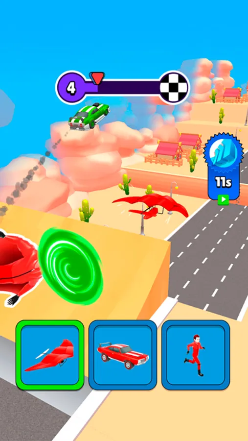 Get set for fun, transformed! Dive into Shape Shifting Race - a thrilling game where you can turn your character into anything and win races on land, through the air, and over the sea. Every level brings a new challenge, and with each character being able to shape-shift, the excitement never stops. Put your skills to the test and aim to be the top racer in all environments! Plus, we've got more than 50 unique vehicles in our game store for you to enjoy. Come and join the fun, it's game time!