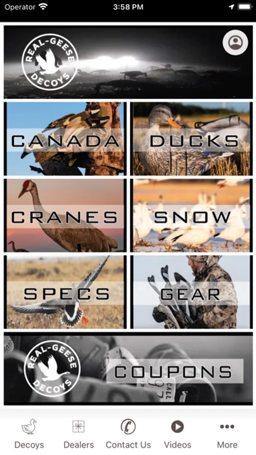REAL-GEESE DECOYS loyalty app provides customers with an enhanced user experience, including personalized coupons and specials.